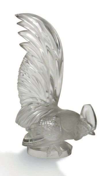 Bouchon de radiateur «coq nain» en verre blanc moulé-pressé
