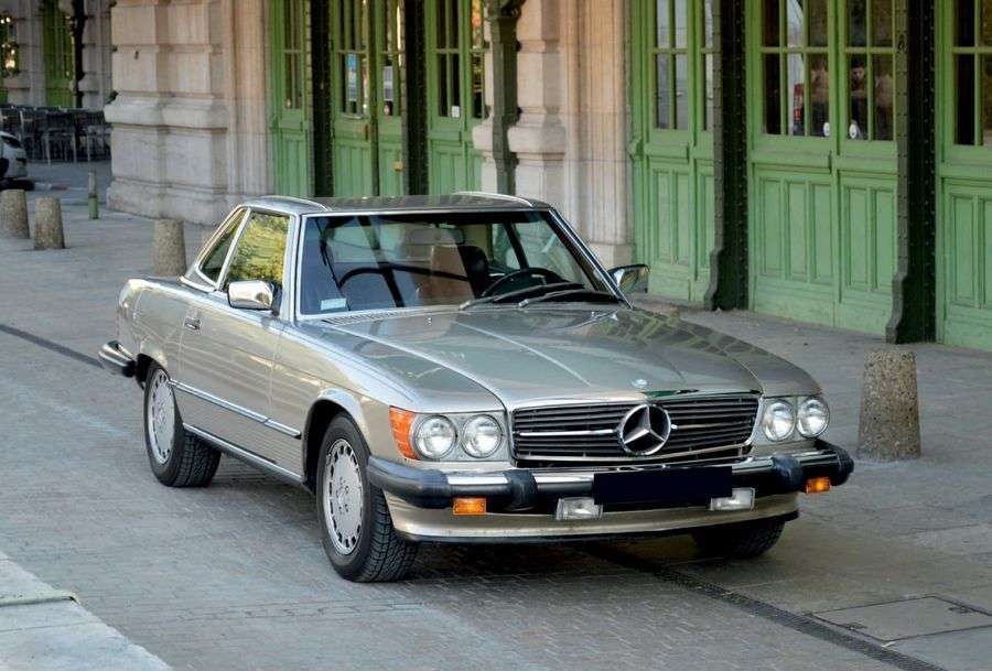 Il est équipé d'une boite automatique, conformément aux attentes des clients. Il a été livré avec un haut niveau d'équipement de série dont une sellerie en cuir, un système d'alarme, des airbags, l'ABS. La voiture dispose d'une nouvelle suspension arrière et d'un différentiel à glissement limité permettant de mieux gérer le couple. Elle tirera sa révérence en 1989. Dans la lignée des Mercedes SL, la génération de R107, bien fabriquée et agréable à rouler, voit aujourd'hui tout logiquement ses prix grimper.