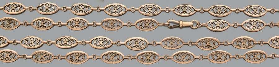 Sautoir en or jaune 18k (750) filigranné.
