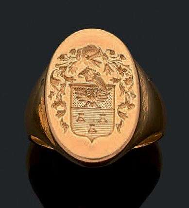 Chevalière aux armes en or jaune 18k (750)
