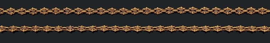 Sautoir en or jaune 18K (750) composé de maillons ovales entrelacés.