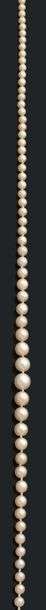 * Collier composé de 96 perles fines en chute et 1 perle de culture. Fermo