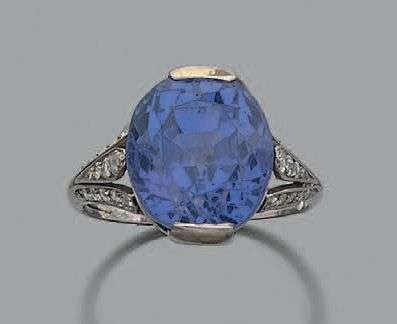 Bague en platine (950) ornée d'un important saphir sur une monture sertie