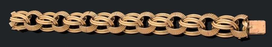 Bracelet articulé en or jaune 18k(750) composé de maillons ronds à décor ciselé. Signé. Poinçon de maître André