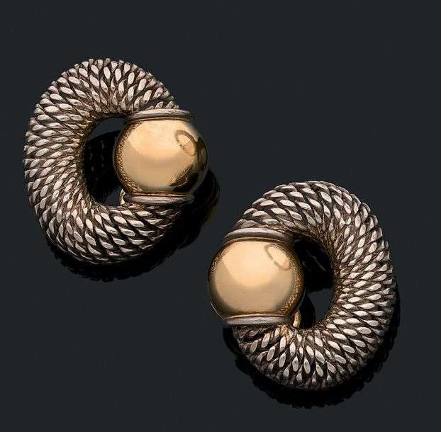 A twisted silver and yellow gold earrings. Rope design. Circa 1970. Signed.