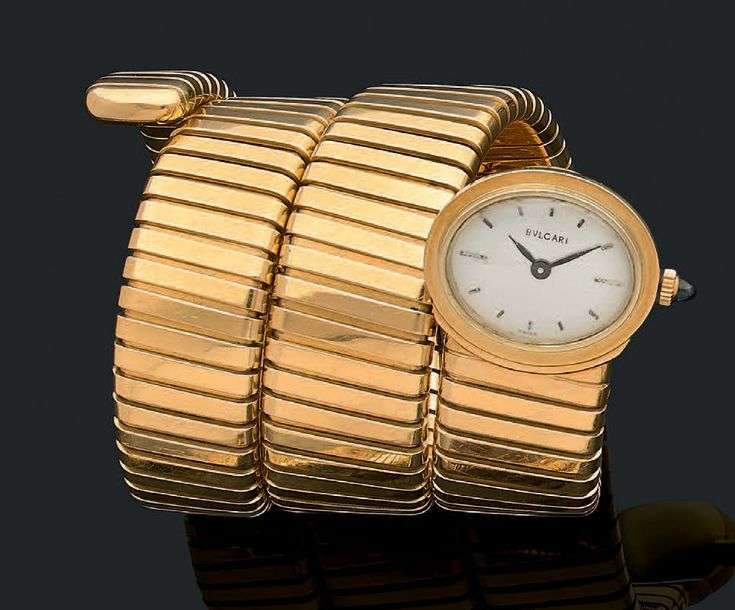 Bulgari. Mouvement mécanique. Bracelet "Tubogas" 3 rangs or jaune 18k, signé