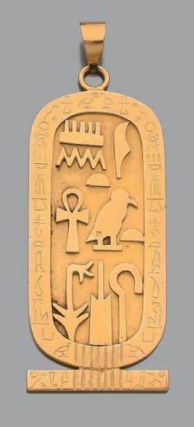 Important pendentif "égyptien" en or jaune 18k (750) à décor de hiéroglyph