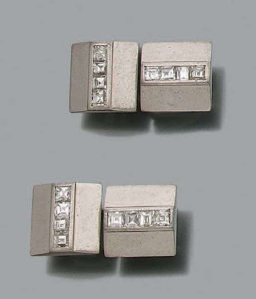 A platinum cufflinks set with diamonds.