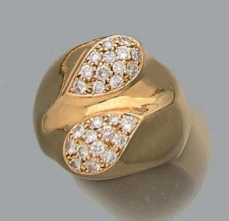 Bague en or jaune 18k (750) ornée de deux motifs en toi et moi en forme de