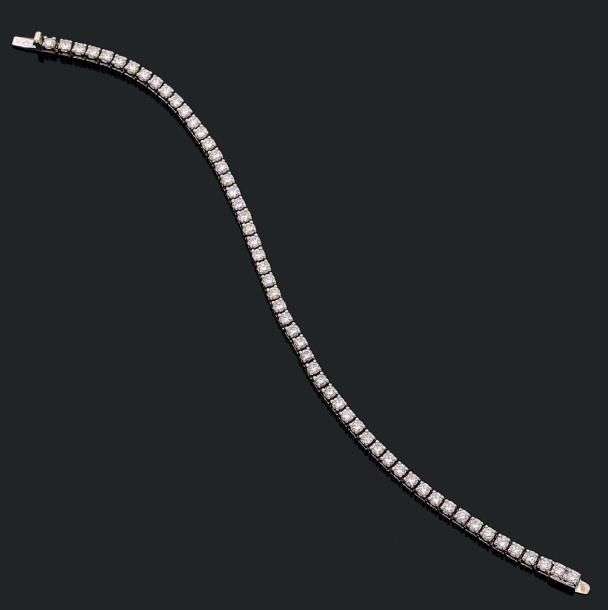 Bracelet "ligne" articulé en or gris 18k(750) serti de diamants de taille brillant.