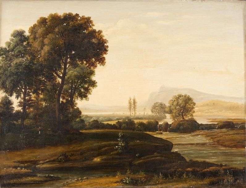 Huile sur panneau, signée en bas à gauche 34.5 x 46 cm