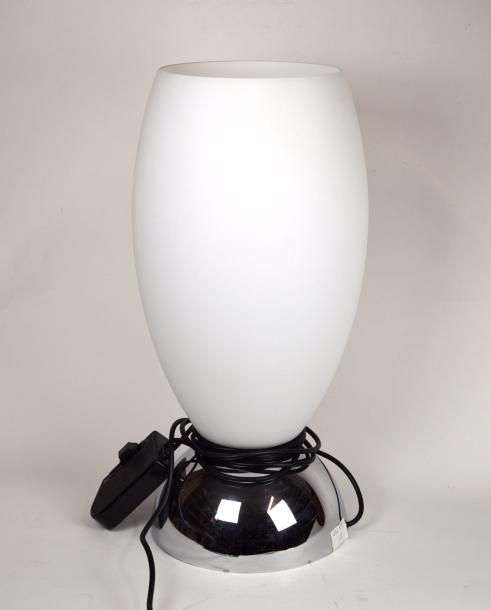Lampe à poser en métal chromé et verre granité