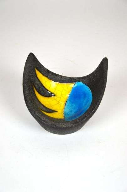 Coupe de forme libre en faience émaillée jaune et bleue
