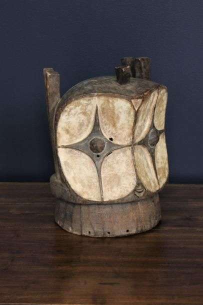Masque heaume à double visage en bois et kaolin