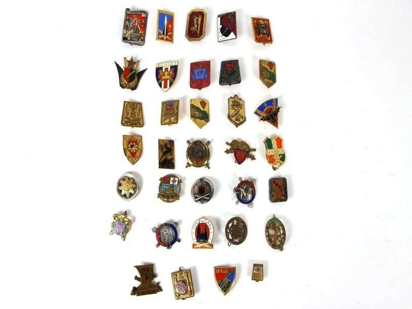 France Lot de 34 (env.) insignes militaires sur l'Artillerie et divers. (accidents, manques)