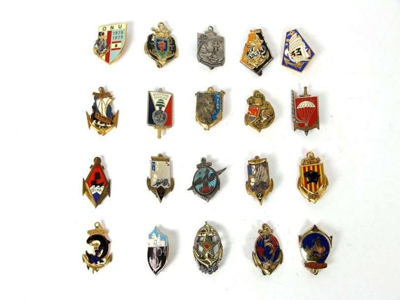 France Lot de 35 (env.) insignes militaires sur la Coloniale et divers. (a