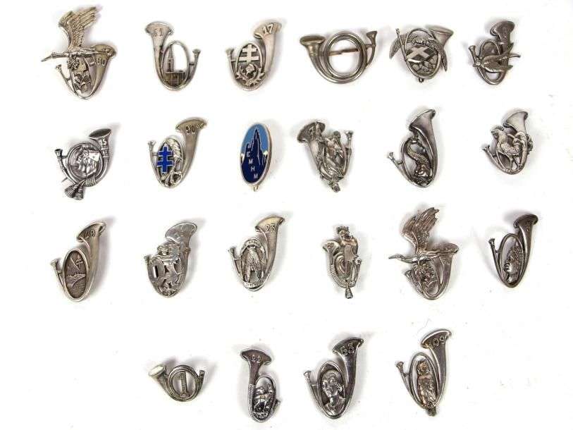 France Lot de 22 (env.) insignes militaires des Chasseurs et divers. (accidents, manques)