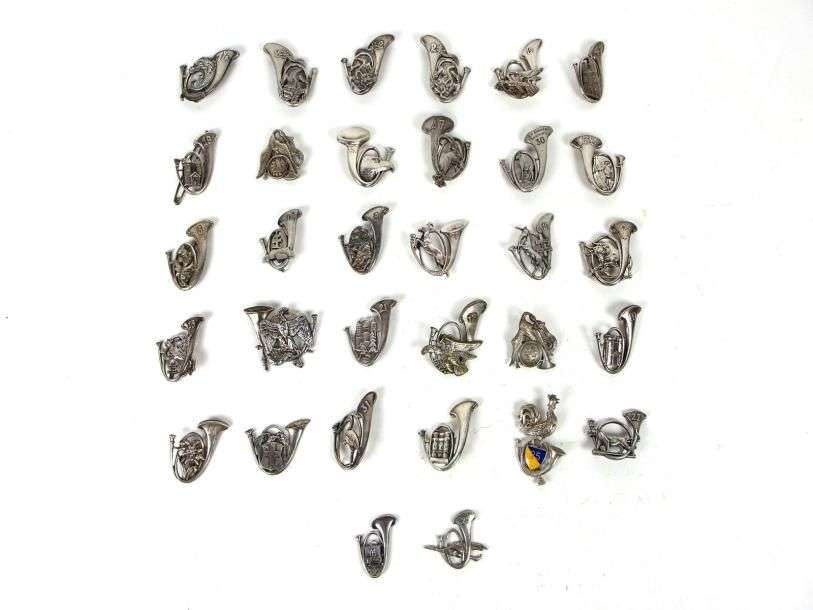 France Lot de 32 (env.) insignes militaires des Chasseurs et divers. (accidents, manques)