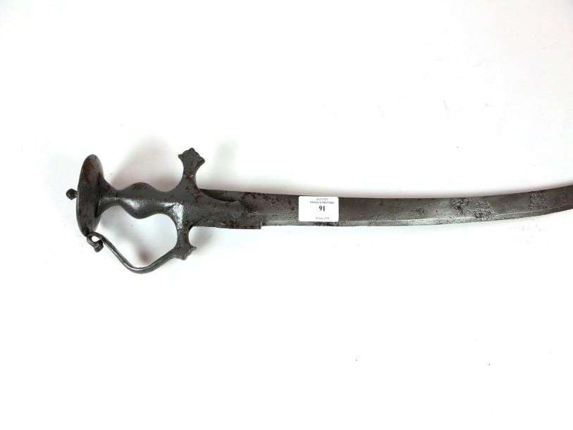 Sabre de l'Inde, dit talwar. Monture en fer. Garde à une branche. Lame cou