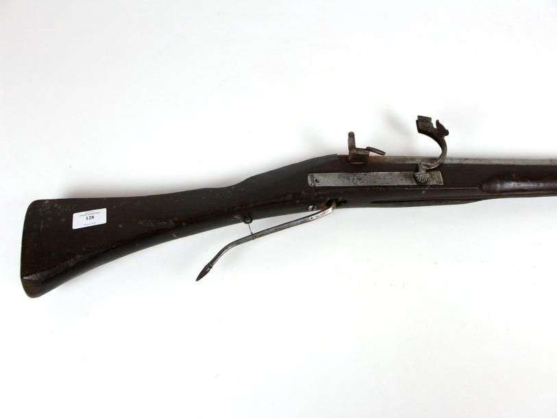 Mousquet à mèche. Canon à pans. Serpentin décoré. Crosse en noyer. EM (piq