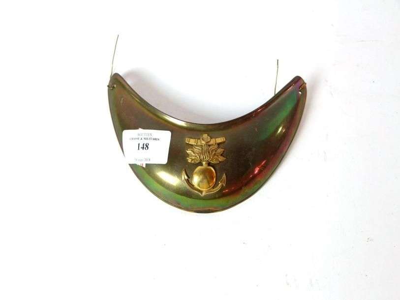 Hausse-col d'Officier d'Artillerie de Marine. Plateau en laiton, motif doré à l'ancre et la grenade.