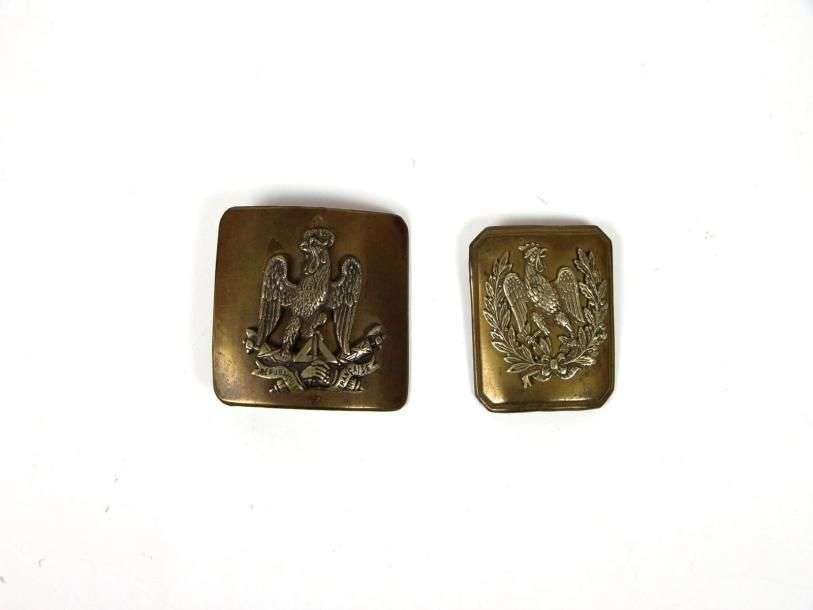 Lot de 2 plateaux de ceinturon d'Officier. Motifs au coq. EM époque Iiè Ré