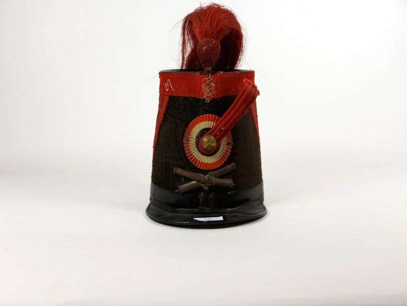 Shako du 11è Artillerie. Fut en taupé. Galon et ganse écarlate. Cocarde mé