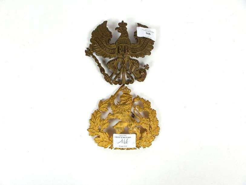 Lot de 2 plaques de casque à pointe : prussienne et Officier hessois. (rép
