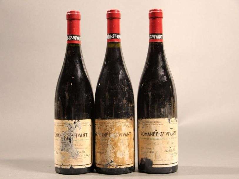 3B ROMANÉE ST VIVANT (Grand Cru) e.t.a. à e.q.i. avec 2 millésimes partiellement lisibles| contre-étiquettes abimées Domaine de la Romanée Conti 1991