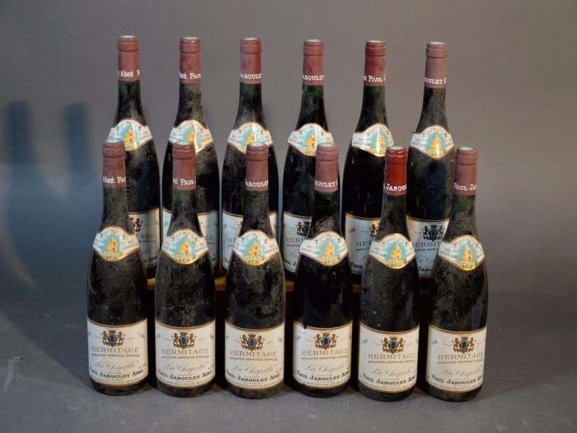 12 B HERMITAGE LA CHAPELLE (e.t.h. légères dont 1 e.l.a| 1 c.a. côté) Jaboulet Ainé 1986