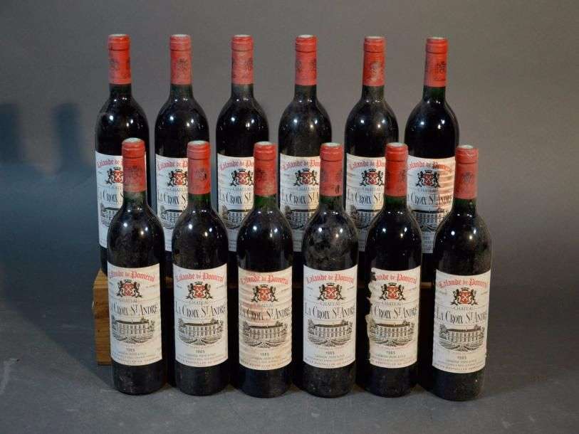 12 B CHÂTEAU LA CROIX ST ANDRÉ (e.t.h. dont 2 e.l.a. et 1 e.t.a| 1 accroc côté capsule) Lalande de Pomerol 1985