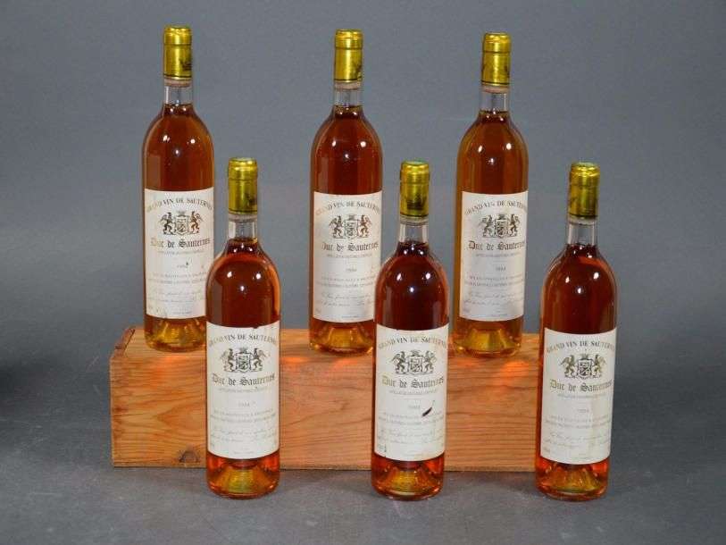 6 B DUC DE SAUTERNES (e.t.h. dont 4 e.l.a| 2 avec 1 accroc sommet capsule) Maison du Sauternes 1994