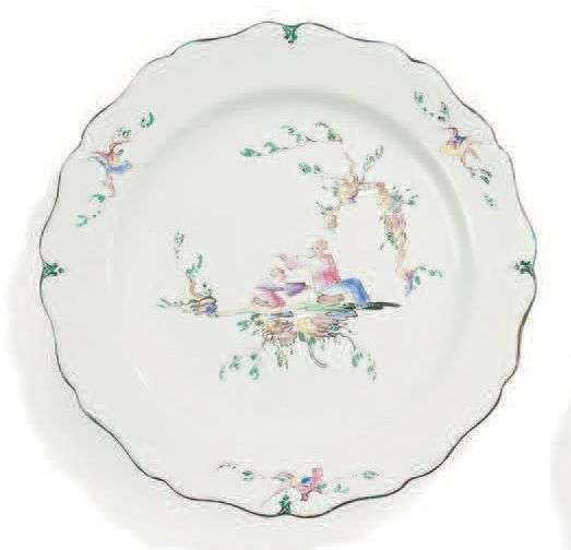 Assiette à bordure contournée décorée d'une scène de chinois dans un paysage dans le goût de Pillement.
