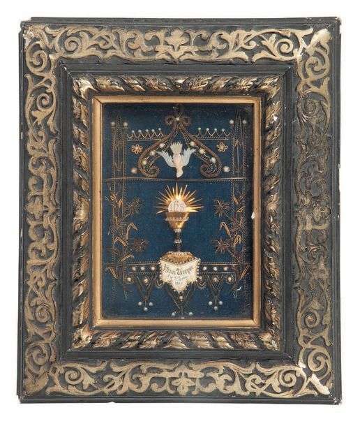 PETIT RELIQUAIRE Travail de fil de cuivre et d'étain et incrustation de pe