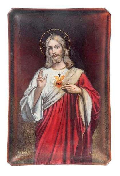 Plaque en vuivre émaillé figurant le Christ.