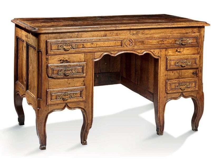 BUREAU À CAISSONS en bois naturel ouvrant à deux tiroirs sur chaque caisson et un en ceinture.