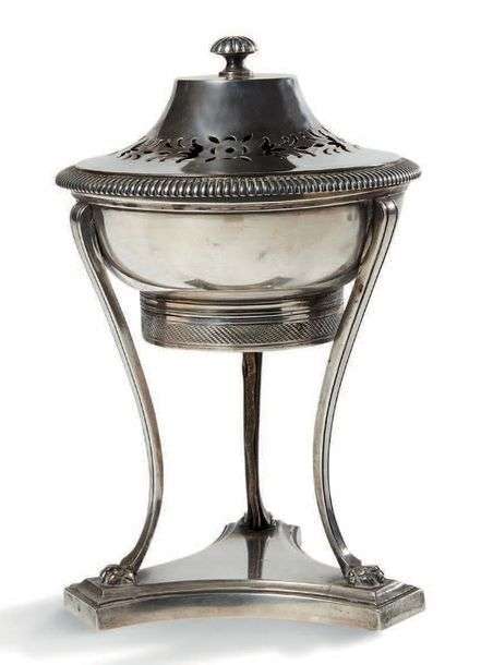 BRULE PARFUM TRIPODE en argent à décor de style Empire.