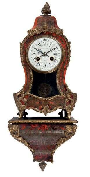 PETIT CARTEL de forme violonée et son cul de lampe en marqueterie de style Boulle d'incrustation de laiton.