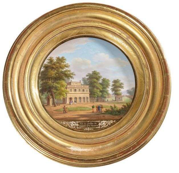 Assiette en porcelaine à décor peint polychrome du pavillon de Lazienki près de Varsovie.