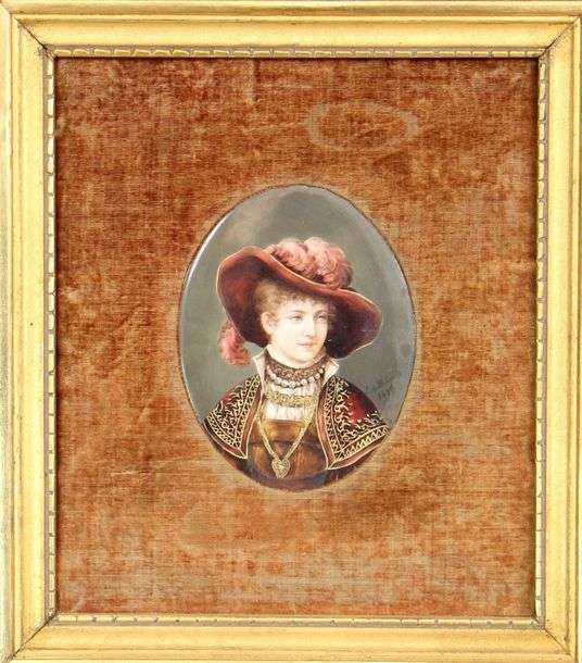 Peinture sur porcelaine, signé et daté 1890