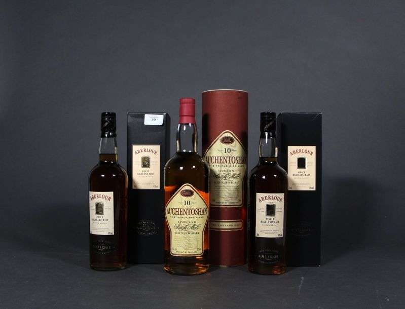 2 B WHISKY SINGLE HIGHLAND MALT ANTIQUE 70 Cl 43° (étui) Aberlour NM
