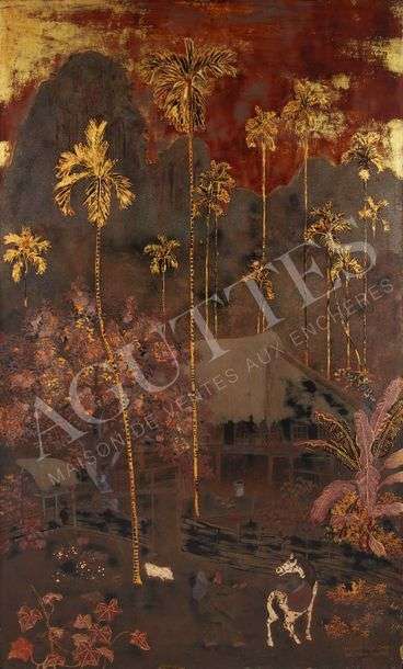 Panneau laqué, signé et daté en bas à droite