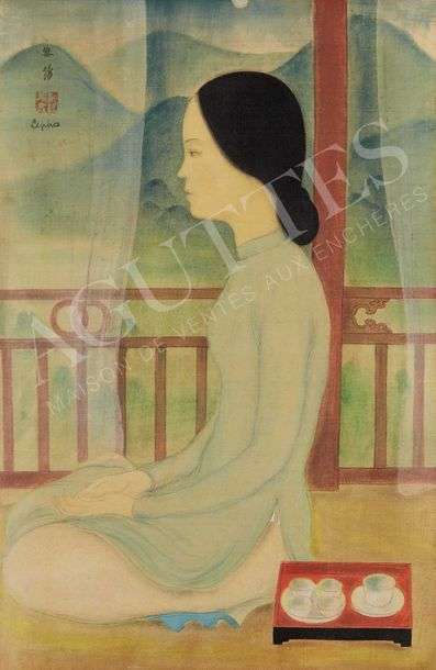 Encre et couleurs sur soie, signée en haut à gauche, titrée et numérotée au dos