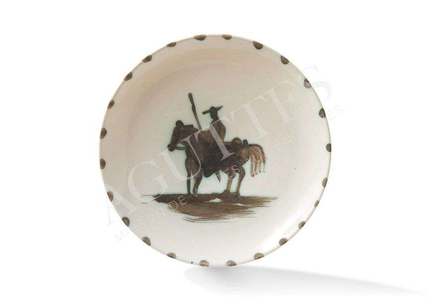 碟子部分上釉,带有毕加索编辑的刻字以及印章,于1952年构思并从产出了500件样品