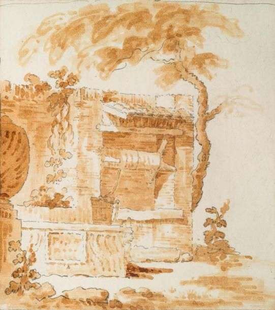 Plume et encre brune, lavis brun 19 x 16 cm