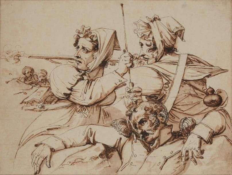 Plume et encre brune, lavis brun 19 x 26 cm