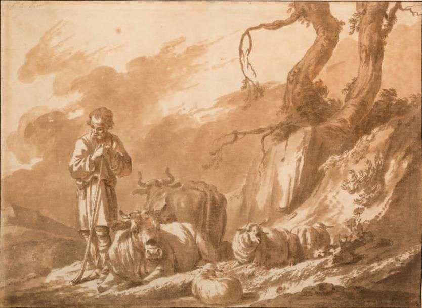 Plume et encre brune, lavis brun 26,5 x 36,5 cm