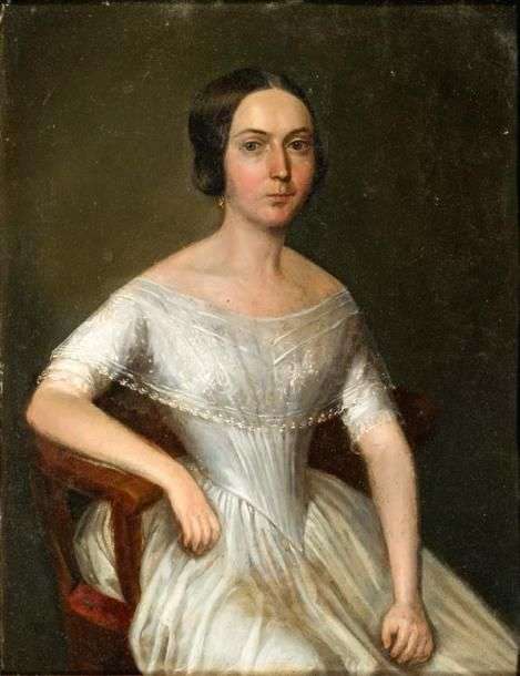 Portrait de femme assise à la robe blanche