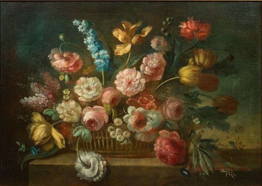 Nature morte de fleurs sur un entablement