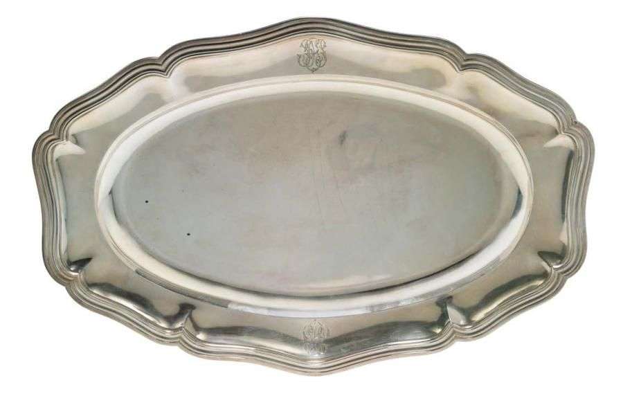 Plat ovale en argent modèle au filet chiffré JC.